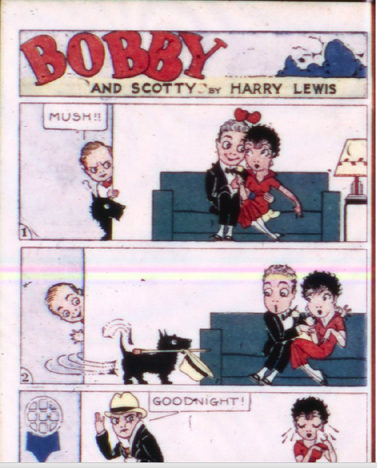 “Bobby and Scotty” by Harry Lewis has two pages in color. This is one of the comics where the pages were not in order.
