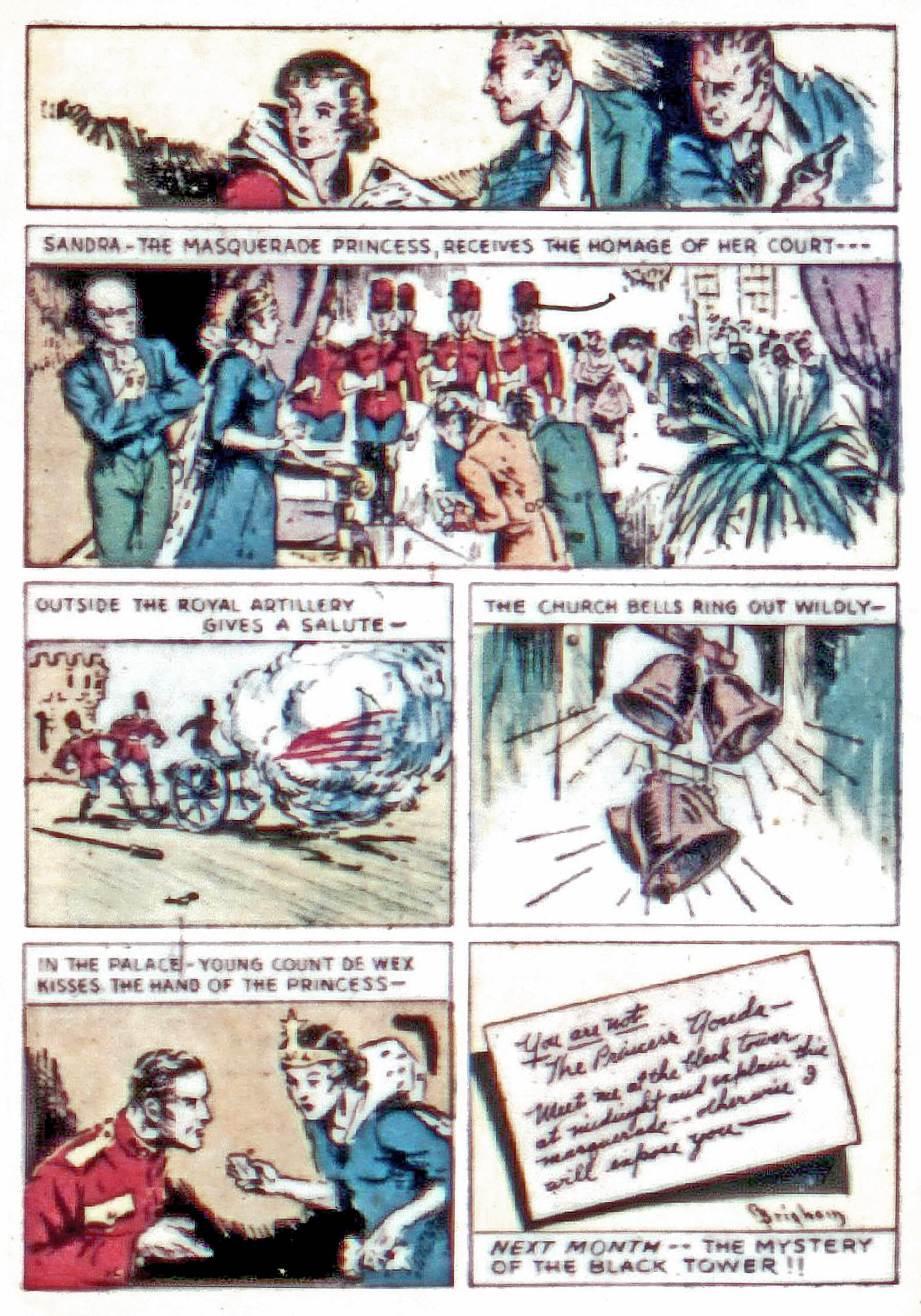 In the continuing story of the Gavonian difficulties, Sandra agrees to impersonate Queen Yolanda. Count Tauru has threatened to kill Lothar and Reynolds if she doesn’t. Sandra agrees to go to the ball as Queen Yolanda and the country rejoices to see their queen. However, she receives a message that someone knows she is an imposter and tells her to meet them at the black tower to explain or she will be exposed.