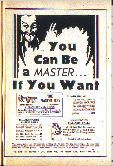 The ad revenue is similar to the previous magazines. There are two large ads on the inside cover. The Gilbert Chemistry Set from Pastime Novelty suggests “Now is the time for a chemistry set. On the same page the Crowell Publishing Company is looking for boys to deliver magazines with prizes they can win. “This Bike can be Yours.” There is a one-half column ad for The House of Magic, A. G. Steen on the “It’s Magic” page and on the following page a small ad for Max Mehl coin dealer.